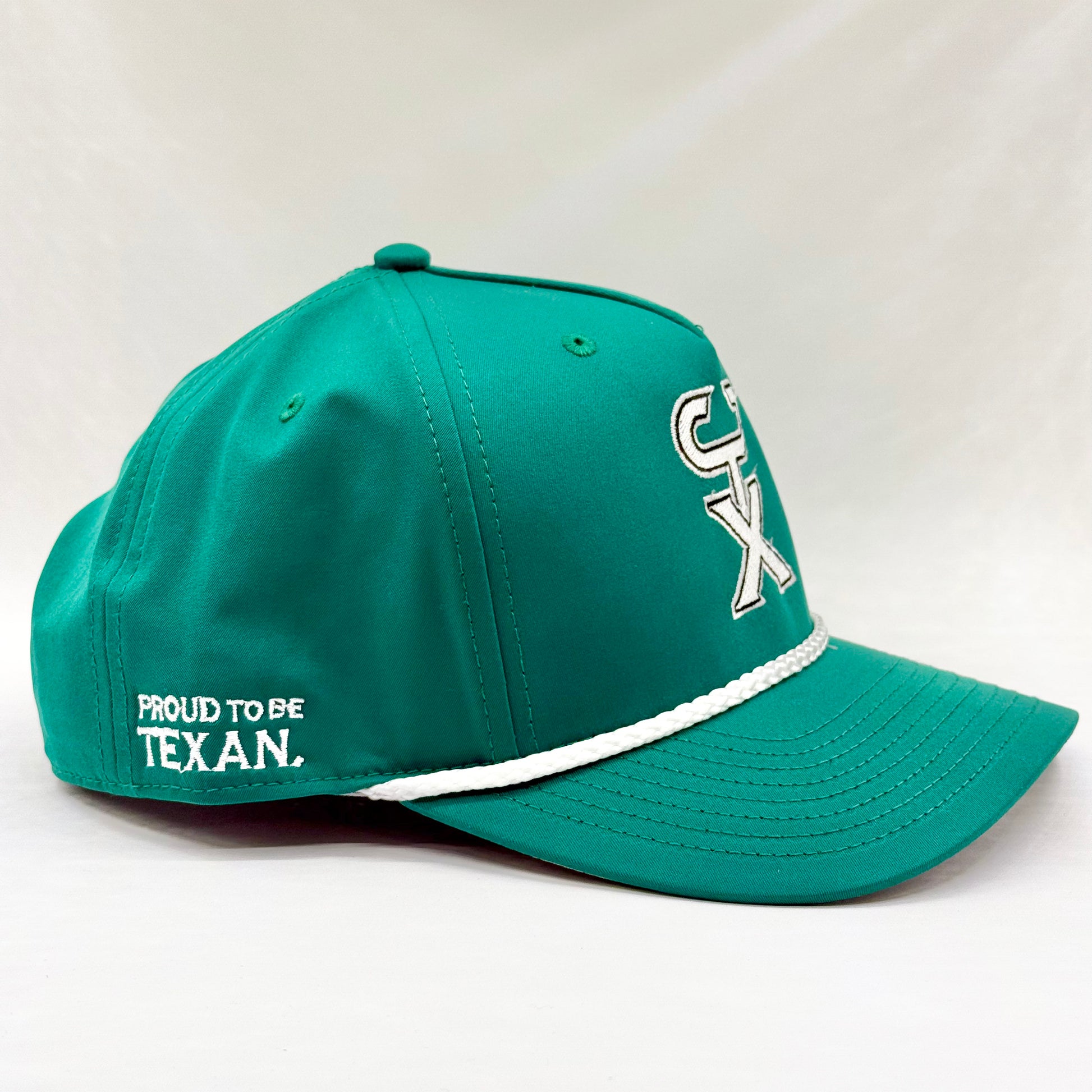 Colonial Greens brings that classic country club confidence with a fresh Texas edge. Clean green profile, crisp white stitching, and a rope detail that feels right at home on the fairway or celebrating a round afterward.