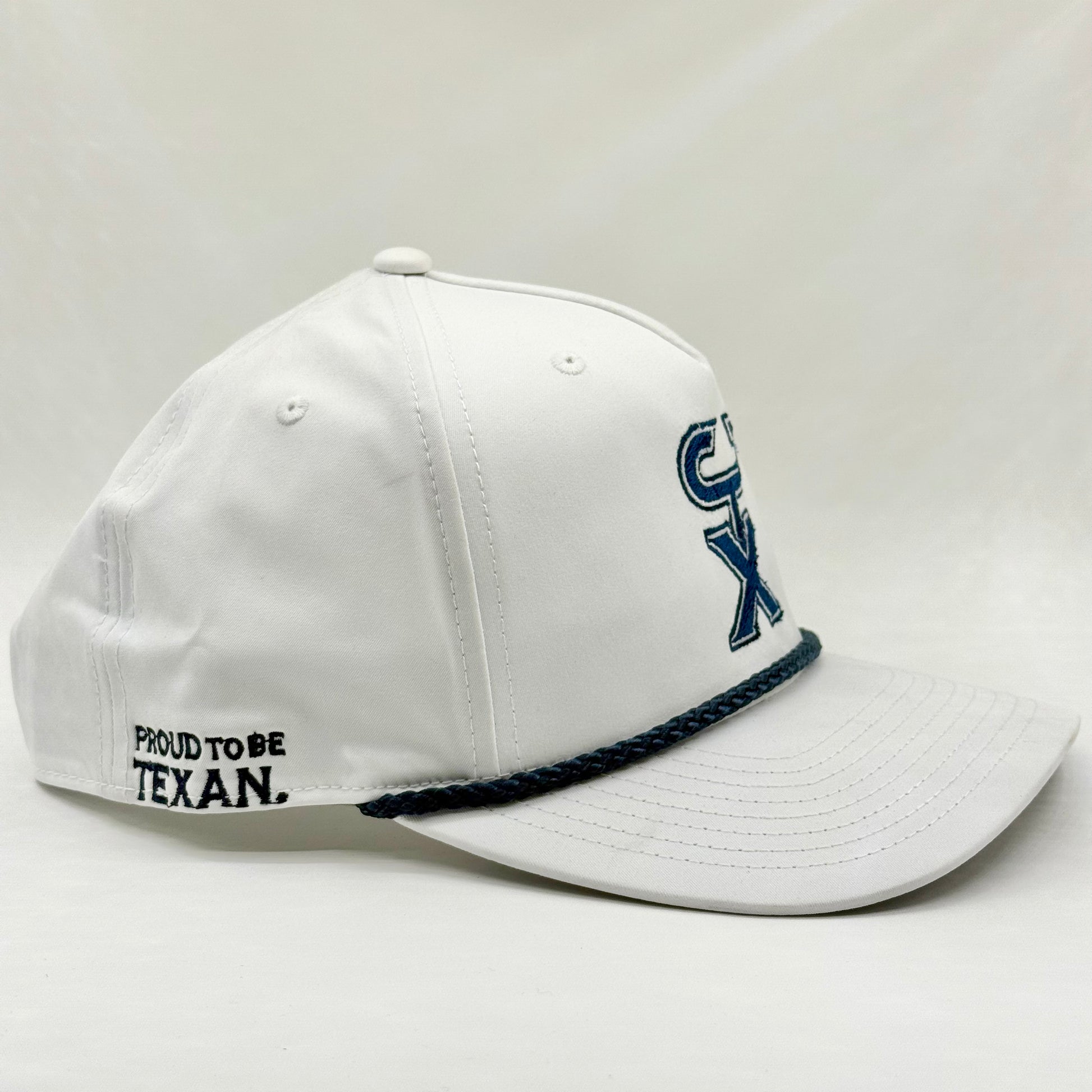 The Star rope hat keeps it sharp in all-white with deep navy stitching, built for game days, tailgates, and anywhere Texans gather with pride. Classic style that always feels like a win.